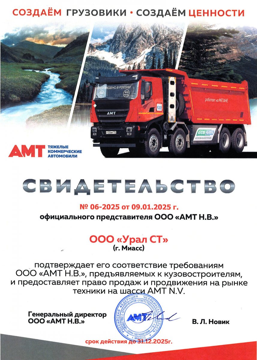 Компании "УралСпецТранс" имеет статус QualifiedPartner (квалифицированного партнера) by Mercedes-Benz Trucks. Наша компания соответсвует высоким требованиям по качеству, сбыту и постпродажному обслуживанию, которые предъявляет подразделение грузовых автомобилей "Мерседес-Бенц" к производителям кузовов в сфере индивидуальных кузовных решений.