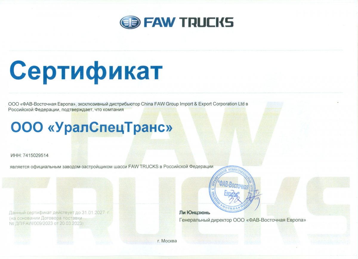 Настоящим подтверждается, что ООО «УралСпецТранс» из России является официальным партнёром Shaanxi Automobile Group Co., Ltd.,