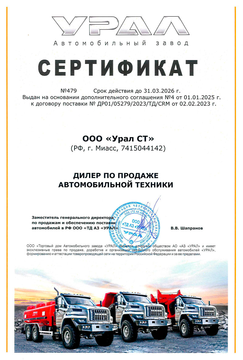 Мы являемся официальными партнерами АО «Автомобильный завод «УРАЛ», поставляем как серийную технику, так и спецтехнику собственного производства на шасси Урал. Помимо этого мы являемся официальным сервисным центром АЗ «УРАЛ» и можем проводить работы по дооборудованию автомобилей.