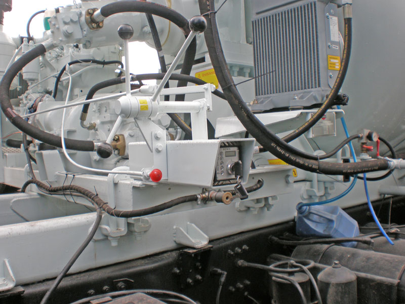Бетоносмесительная навеска крепится в передней части к раме автомобиля кронштейнами с пружинными компенсаторами, задняя часть навески жестко фиксируется. Такой вариант крепления позволяет избежать повреждение навески при скручивании рамы во время движения по пересеченной местности и обеспечивает максимальный срок эксплуатации. Прижимная лента позволяет предотвратить повреждения рабочей поверхности бандажного кольца из-за подпрыгивания пустого барабана при движении в условиях бездорожья.