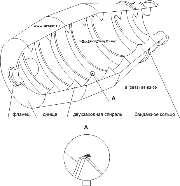 Перпендикулярно приваренная полоса к спиралям барабана образует Т-образное соединение, что повышает жесткость конструкции емкости смесителя, износостойкость и улучшает качество перемешивания.