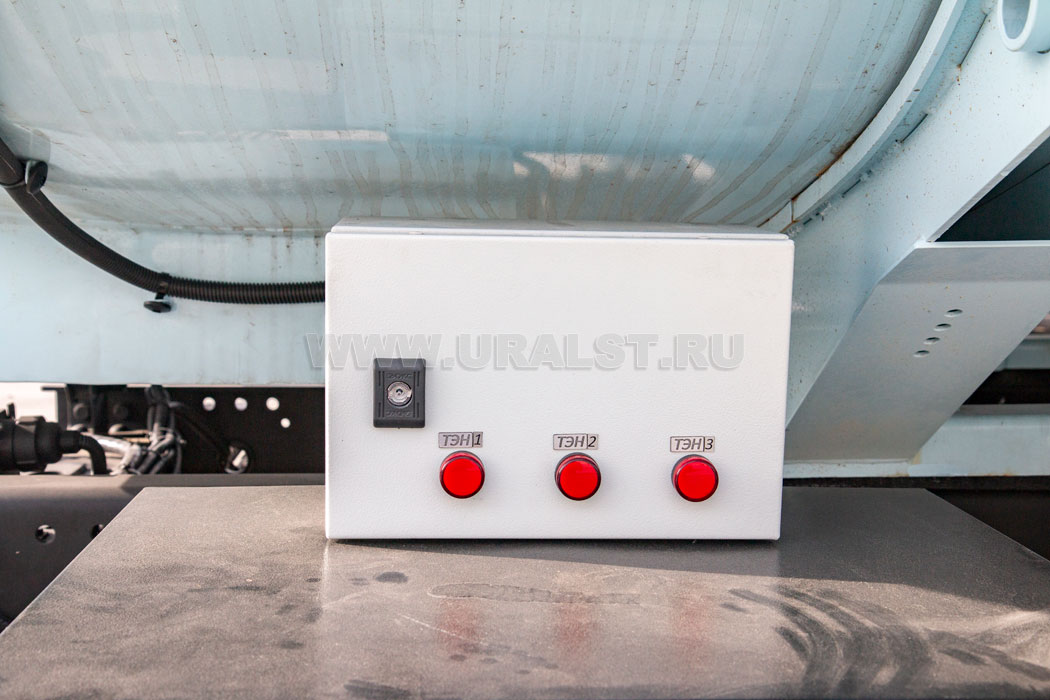 Обогрев насосного отсека также может осуществляться от воздушного тэна и автономного воздушного отопителя. Обогрев жидкости во время стоянки автомобиля производится тэнами, установленными в отсеках цистерны. Питание тэнов осуществляется от внешнего источника 220В.