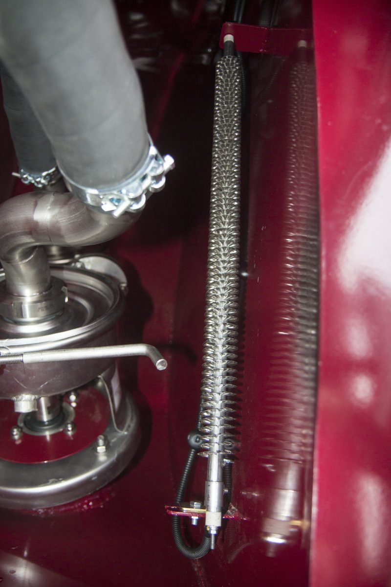 В насосном отсеке, стенки которого также имеют утепление, отводная труба установлена открыто и выполняет роль теплообменника, нагревая воздух внутри отсека. В ходе испытаний, проведенных с целью оценки эффективности подогрева, установлено, что тепловой энергии отработавших газов достаточно для подогрева жидкости в цистерне и обогрева насосного отсека до положительных значений температуры при движении автомобиля более 30 минут.