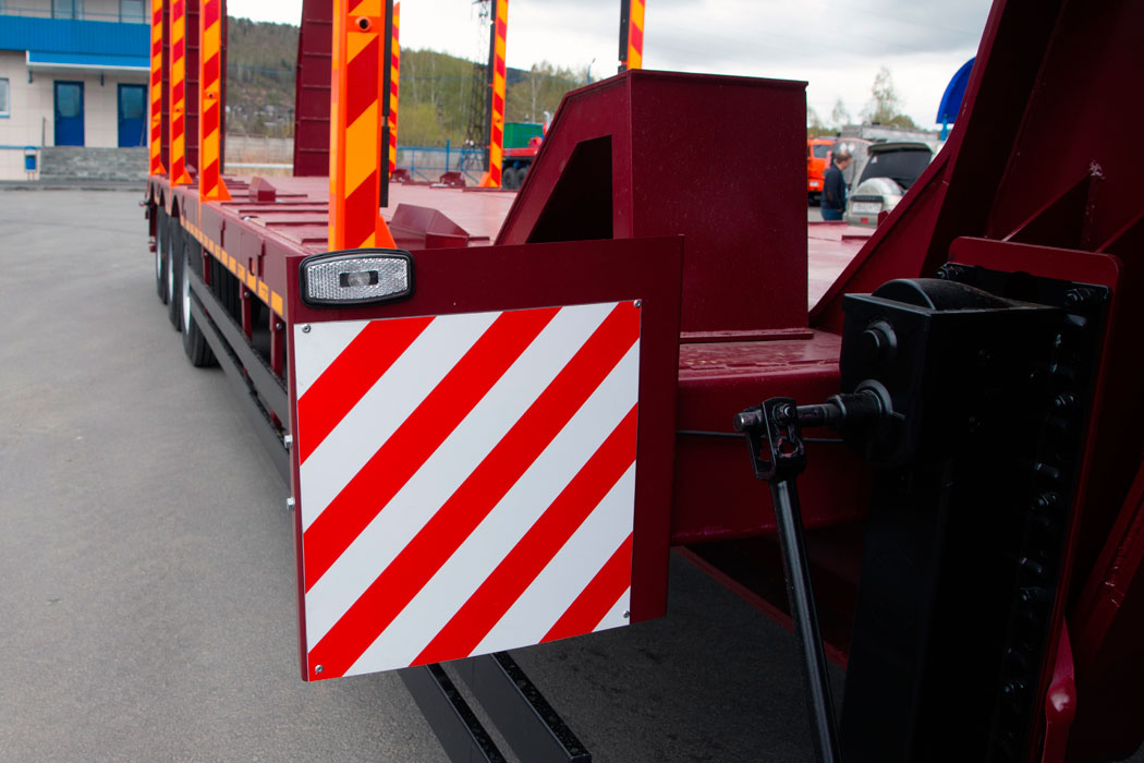 - По всей длине платформы расположены регулируемые боковые упоры, предотвращающие смещение груза во время транспортировки.