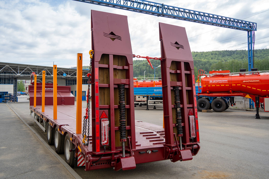 Аппарели полуприцепов-тяжеловозов SEVEREST обеспечивают удобный и безопасный заезд техники на платформу и подбираются в зависимости от задач перевозки. Конструкция предусматривает несколько вариантов исполнения, что позволяет эффективно работать как с легкой, так и с тяжелой дорожно-строительной техникой. Дополнительно реализована возможность смещения трапов наружу для заезда негабаритной техники. Для снижения массы и улучшения сцепления при заезде аппарели могут выполняться с деревянным настилом.
