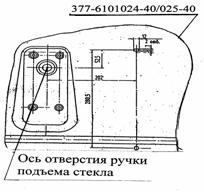Закрепить стеклоподъемник на штатные отверстия и на два дополнительных отверстия винтами (Винт М6-6 g х12 - 2шт.), закрыть люк на панели двери штатной крышкой монтажного люка 377-6101036/037 (правая, левая).