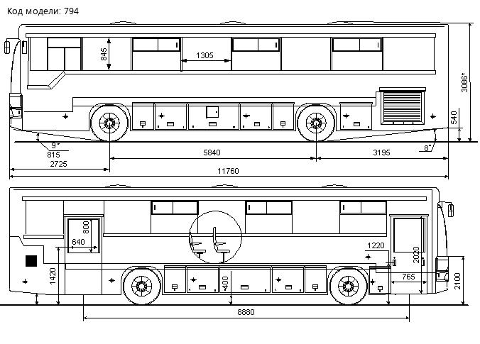 В автобусе имеются сиденья, а также участки вне прохода, предназначенные для стоящих пассажиров.Кузовкаркасный, вагонного типа с термоизоляцией, с двойным остеклением салона и дверей, двумя герметичными одностворчатыми дверями с пневмоприводом.