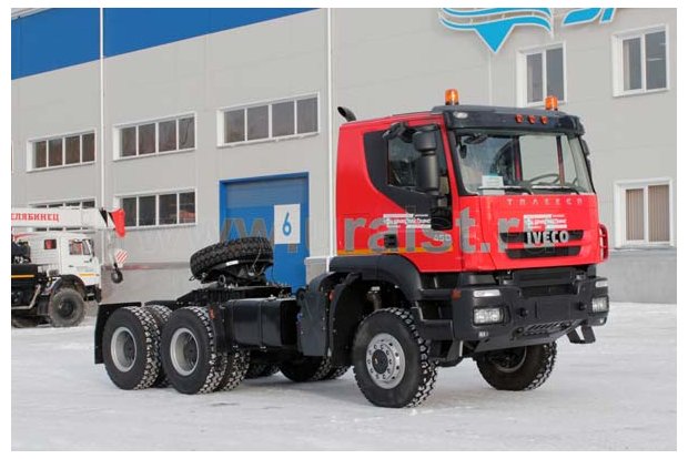 Седельный тягач IVECO-AMT 633910 предназначен для буксирования полуприцепов полной массой до 78 тонн по всем видам дорог.