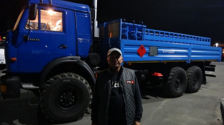 Паллеты для перевозки баллонов представляют собой ячеистую конструкцию с отделениями из металлического профиля, обшитыми фанерой для исключения искрообразования. Также баллоновоз оборудован для перевозки опасных грузов: огнетушители, ящик с песком, вертикальная система выпуска отработанных газов за кабиной, проблесковый маячок, таблички со знаками опасности и т.п.