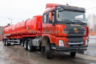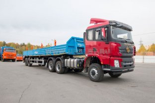 Автопоезд в составе Седельный тягач Тягач SHACMAN (ШАКМАН) SX32586V385 6х6, кабина Х3000, двигатель WP12.430E50 (430л.с.), КПП 12JSDX220A-B, двускат, шины 315/80R22.5, шкв. 2" (ССУ 1500 мм)/ шкв. 3,5" (ССУ 1550 мм) с Полуприцеп бортовой контейнеровоз для перевозки двух контейров типа 1С, одного типа 1А, 27 тн, 12 м, 2 оси, односкатный, шины 14R20, рессорно-балансирная подвеска без РШ(центральный балансир), коники раздвижные обрезиненные, три положения шкворня, контейнеровозные фитинги, съемные