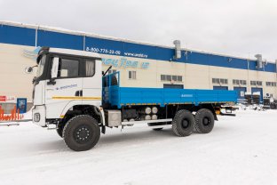 6х6, бортовой контейнеровоз, кабина Х3000 с одним спальным местом, ДВС WEICHAI WP12.430E50 (430 л.с.), КПП FAST GEAR 12JSDX220A-B, РК ZQС2000, шины 315/80R2,5, УВЭОС, Держатели для табличек, пеналы для огнетушителя, тахограф под ADR, кнопки отключения массы в кабине по ДОПОГ, наружная кнопка отключения массы по IP65, набор ДОПОГ, колпачки на клеммы АКБ