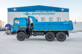 Самосвал с задней разгрузкой, 19,4 тн, 16 м3, задний борт, платформа коробчатого типа с обогревом, высота борта 1600 мм, ДЗК на платформе, задний буксирный прибор шкворневого типа, без выводов на прицеп, КОМ на КПП + гидронасос, без ДОМ, без БЗУ, без ЗЗУ, без тента, с двухскатной ошиновкой, 6х6, 420 л.с., дв. ЯМЗ-653, КП FG16,