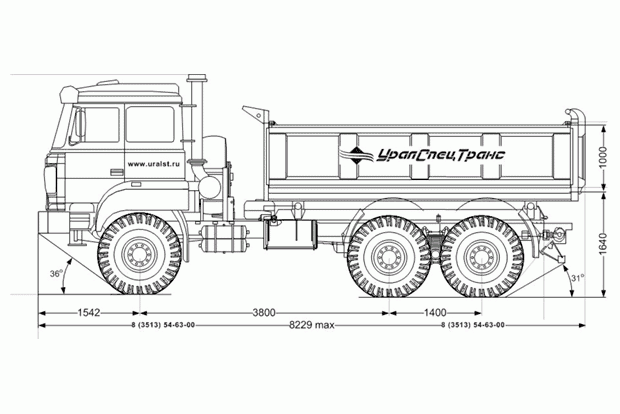 | Тип | стальная, сварная, коробчатого типа, с откидными боковыми и задним бортами, запоры боковых бортов ручные, заднего борта автоматические, с прямым передним бортом с защитным козырьком, с легкоразъемными элементами крепления к надрамнику |