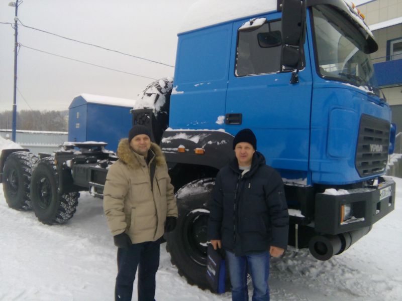 Седельный тягач Урал предназначен для буксирования полуприцепов по всем видам дорог и местности в составе автопоезда полной массой до 38 тонн.