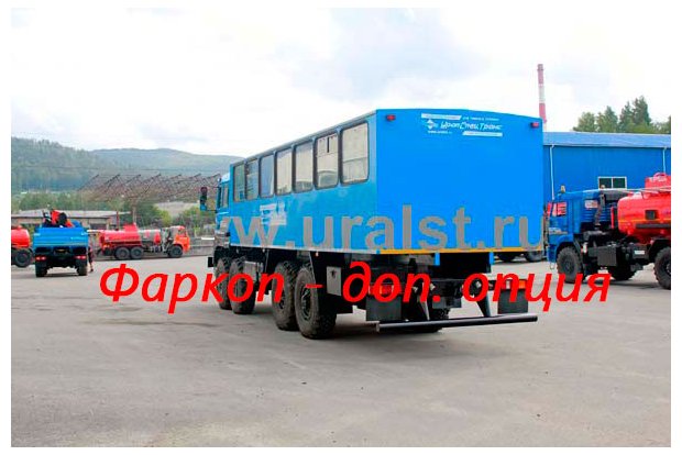 Вахтовый автобус на шасси Урал 532362-1122-70 предназначен для оперативной доставки рабочих (ремонтных, строительных, геолого-разведывательных и т.п.) бригад в количестве 32 человек в салоне кузова-фургона на объект по дорогам общего пользования.