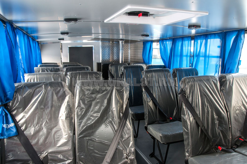 Вахта Урал-4320-NEXT оснащена аварийно-вентиляционным люком обеспечивающим большую проветриваемость салона, в случае необходимости может использоваться как аварийно-эвакуационный люк.Отопительная система вахтового автобуса