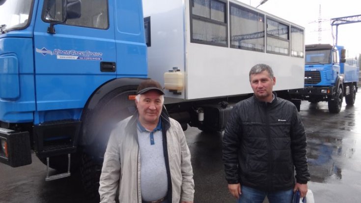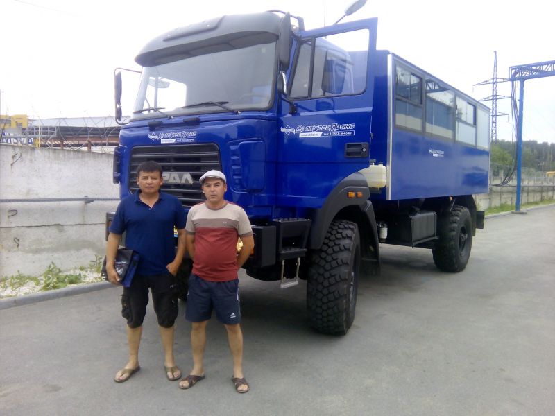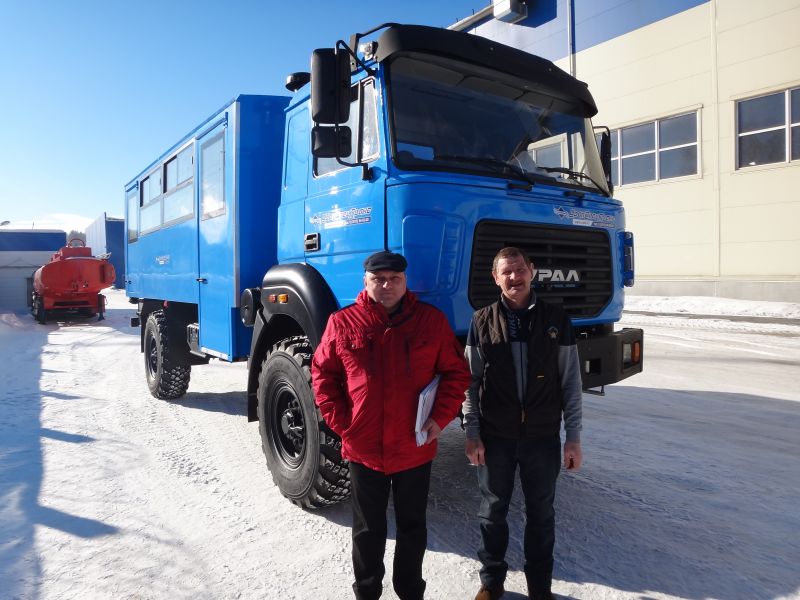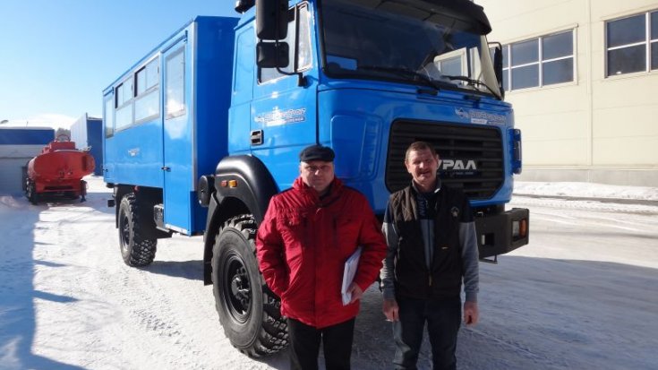 Автобус вахтовый Урал с колесной формулой 4х4 с двигателем экологического класса ЕВРО-5 оборудован кузовом-фургоном с низким полом и предназначен для оперативной доставки рабочих (ремонтных, строительных, геолого-разведывательных и т.п.) бригад в количестве 20 человек на объект (+ 1 пассажирское место в кабине водителя).