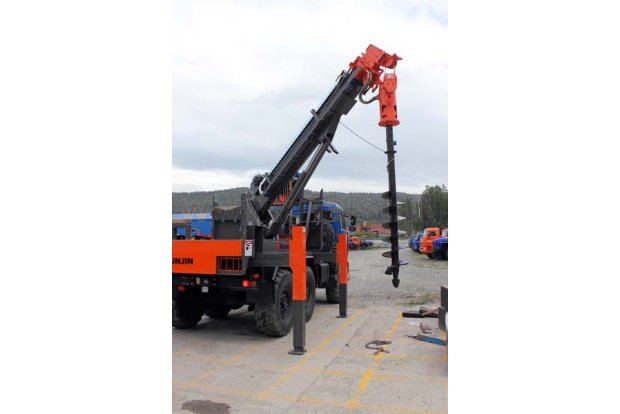 Крано-буровая установка JUNJIN SA-040C обеспечивает проведение бурильных работ на глубину до 4,5 метров, а также грузоподъемных работ весом до 4 тонн.