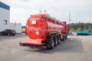28 м3, безрамная конструкция, 3 секции, система рекуперации паров, трехосный, односкатный, пневмоподвеска, АБС, оси УСТ