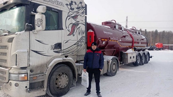 - Цистерна круглого сечения, самонесущая на подкатной тележке,