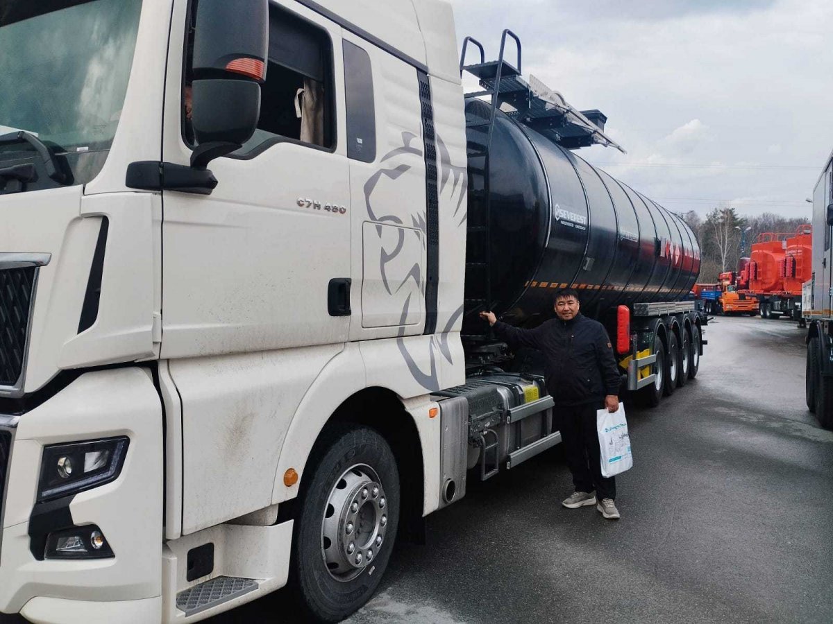 32 м3, полуприцеп цистерна битумовоз, круглое сечение, четырехосный, односкатный, пневматическая подвеска, две подъемные оси, утепление 150 мм Субсидия