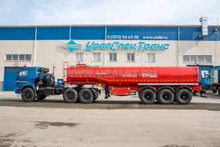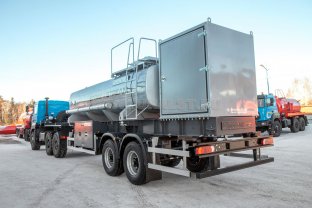 Полуприцеп цистерна для эмульсии, 22 м3, 3 секции, 2 оси, термос, Рессорно-балансирная без реактивных штанг, двускатная ошиновка, шины 315/80 R22,5