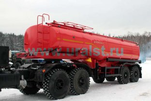 Полуприцеп цистерна для технической воды, 22 м3, рамный, чемодан, 1 секция, 3 оси, односкатный, шины 425/85 R21, рессорно-балансирная подвеска, утепление 100 мм, паровые трубы