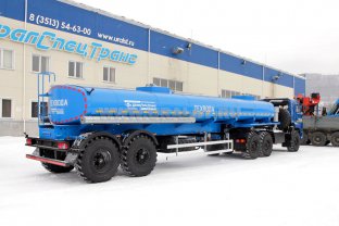 Полуприцеп цистерна для технической воды, 20 м3, рамный, чемодан, 1 секция, 2 оси, односкатный, шины 425/85 R21, рессорно-балансирная подвеска, утепление 100 мм, паровые трубы