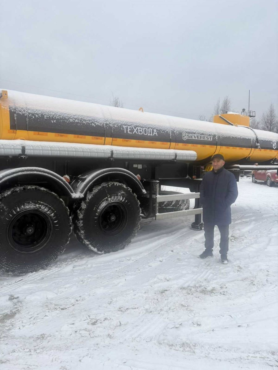 Полуприцеп-цистерна для технической воды имеет рамную конструкцию – цистерна укладывается в ложементы рамы полуприцепа. Фиксация цистерны на ложементах при помощи стяжных лент, обеспечивает небольшую свободу цистерны при скручивании рамы, что дополнительно снижает нагрузку на саму цистерну. Такая конструкция имеет высокую прочность и надежность за счет того, что основная часть динамических нагрузок при движении приходится на раму. Стальная рама полуприцепа цистерны из сварного профиля имеет большой запас прочности, дополнительную жесткость конструкции придают вваренные усилители.