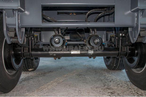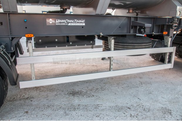 Полуприцеп цистерна представляет собой несущую прямую раму, установленную на двухосную тележку. Крепление цистерны к раме осуществляется двумя парами контейнерных замков (в случае необходимости емкость может быть демонтирована).