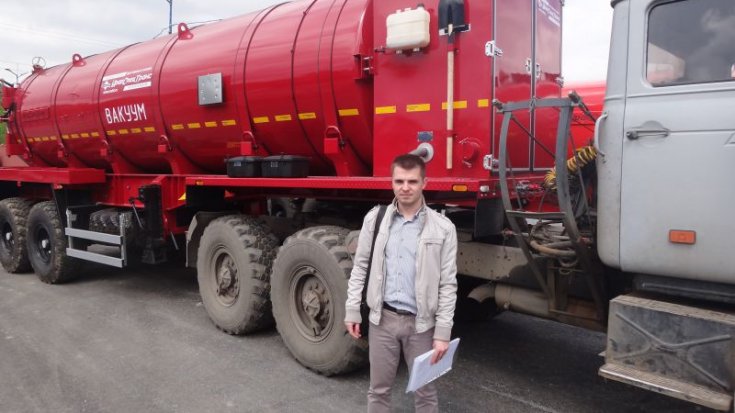 Вакуумный насос установлен внутри утепленного короба в передней части цистерны. Насос можно обогревать как выхлопными газами от автомобиля-тягача так и с помощью жидкостного радиатора с вентилятором в который жидкость нагнетается с помощью подогревателя ПЖД-30, установленного внутри короба.