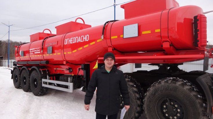 Полуприцеп-цистерна «УралСпецТранс» имеет рамную конструкцию – цистерна укладывается в ложементы рамы полуприцепа. Фиксация цистерны на ложементах при помощи стяжных лент, обеспечивает небольшую свободу цистерны при скручивании рамы, что дополнительно снижает нагрузку на саму цистерну. Такая конструкция имеет высокую прочность и надежность за счет того, что основная часть динамических нагрузок при движении приходится на раму. Стальная рама полуприцепа цистерны из сварного профиля имеет большой запас прочности, дополнительную жесткость конструкции придают вваренные усилители.