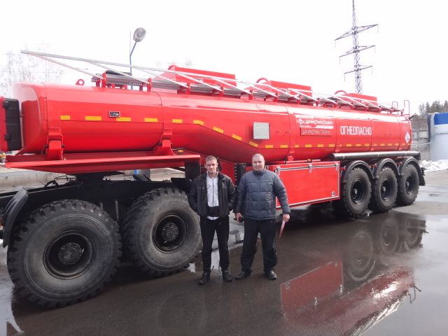 узлом выдачи топлива (УВТ) для перекачивания нефтепродуктов. Система раздачи топлива (СРТ) расположена с левой стороны в боковых ящиках на полуприцепе, а узел выдачи топлива (УВТ) - с правой в боковом ящике. В состав УВТ входят счетчик выдачи топлива, раздаточный кран, рукав раздаточный. Система раздачи топлива (СРТ) оснащена насосом, трубопроводом с быстроразъемными соединениями (БРС) и блоком пневмоуправления донными клапанами.