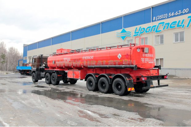 Полуприцеп-цистерна «УралСпецТранс» имеет рамную конструкцию – емкость укладывается в ложементы рамы полуприцепа, рама устанавливается на тележку. Фиксация цистерны на ложементах при помощи стяжных лент обеспечивает небольшую свободу емкости при скручивании рамы, что дополнительно снижет нагрузку на саму емкость. Такая конструкция имеет большую прочность и надежность за счет того, что большая часть динамических нагрузок при движении приходится на раму. Стальная рама полуприцепа-цистерны из гнутого профиля имеет большой запас прочности, дополнительную жесткость конструкции предают вваренные усилители.