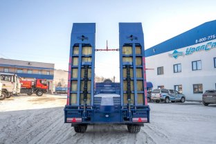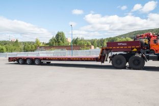 Полуприцеп тяжеловоз, 45 тн, 3 оси, односкатный, шины 445/65 R22,5, пневматическая подвеска, оси BPW, механические трапы, уширители, два положения шкворня, задний радиус ометания 2300 мм, платформа 8000х2500(3000)/1262