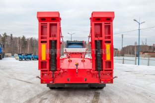Полуприцеп тяжеловоз, 45 тн, 3 оси, односкатный, рессорно-балансирная подвеска, шины 445/65 R22,5, раздвижные коники, механические трапы, уширители, платформа 10820х2530(3150)/1330 мм, топливный бак