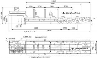 53 тн, 10070х2500 (ушир 3000)/1225 мм, 2 оси, шины 12.00R20, в с/у 1885, диам. шкворня 100 мм, мех. трапы 700