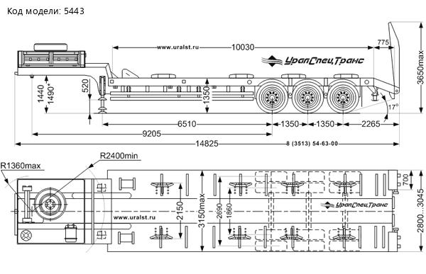 75 тн, 14825х2800(3045)х3650, подв. рессорно-балансирная, 3 оси, двускатный, шины 385/65 R22,5
