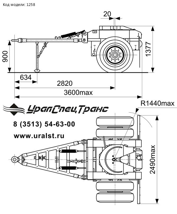 16,0 (2,1), 3600 мм с дышлом х2490мм, шины 12,00-20 нс 20, мод.ИЯ-241 4 шт., рессорн. "BPW", для 94161-50,40,94162-10, ССУ 2 дюйма, петля 90мм