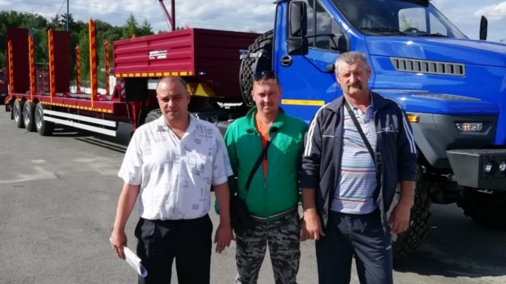 Для перевозки негабаритной техники полуприцеп тяжеловоз оснащен боковыми уширителями платформы. Уширители имеют выдвижную конструкцию и расположены с двух сторон по всей длине грузовой платформы. В качестве настила на уширители укладываются доски.