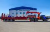 На заднем свесе полуприцепа установлены откидные опоры, предназначенные для достижение максимальной устойчивости при заходе/сходе на грузовую платформу тяжелой самоходной техники.