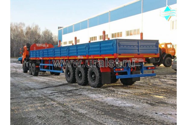 25,5(10,5)тн, 14236х2430(3258 вн. по коникам), односкатный, шины 1200х500-508 (6+1); завис. рессорн. 3 оси, нагр. на ССУ 12,0 тн., , шкв. 2"
