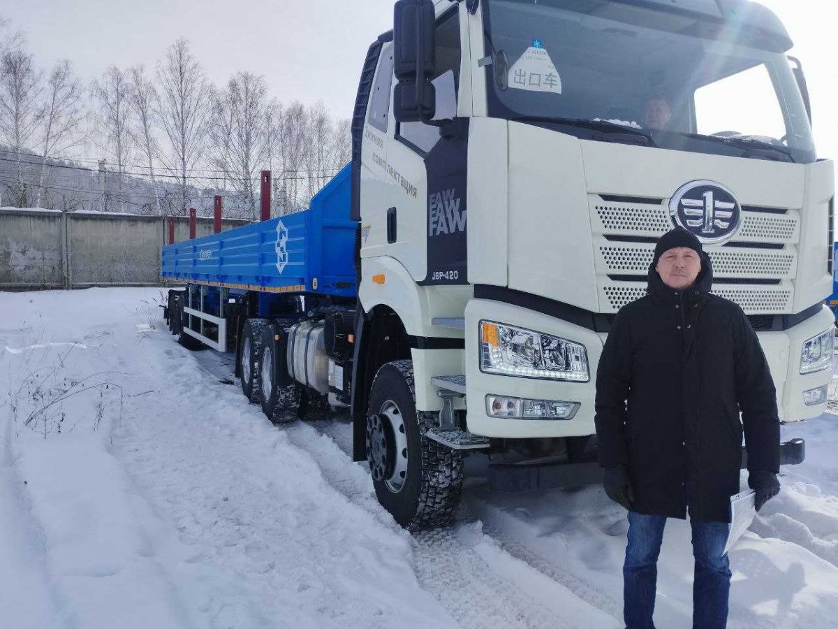 Полуприцеп бортовой, 20 тн, 12 м, 2 оси, односкатный, шины 425/85R21, рессорно-балансирная подвеска, коники раздвижные, два положения шкворня, высота ССУ 1500 мм, штатный ДЗК с запасным колесом полуприцепа, ДЗК с лебедкой для размещения запасного колеса тягача