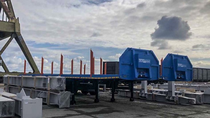 Полуприцеп специализированный, 20 тн, 12 м, 2 оси, односкатный, шины 425/85R21, рессорно-балансирная подвеска, коники раздвижные, два положения шкворня, без бортов
