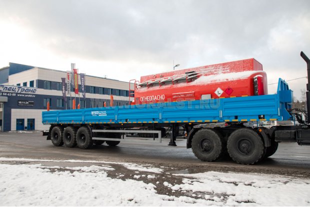 • Борта и стойки с возможностью демонтажа, размер бортов позволяет грузить их поперек кузова и увязывать в передней части полуприцепа;