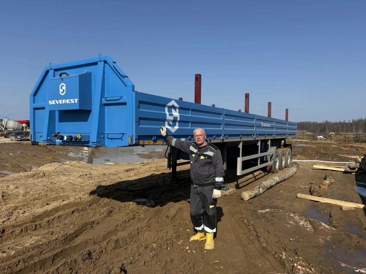 • Борта и стойки с возможностью демонтажа, размер бортов позволяет грузить их поперек кузова и увязывать в передней части полуприцепа;