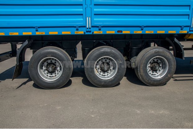 • Борта и стойки с возможностью демонтажа, размер бортов позволяет грузить их поперек кузова и увязывать в передней части полуприцепа;