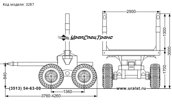 Прицеп роспуск лесовозный, г/п 12 тн., двухосный, односкатный, баланс. подвеска, транспортное дышло
