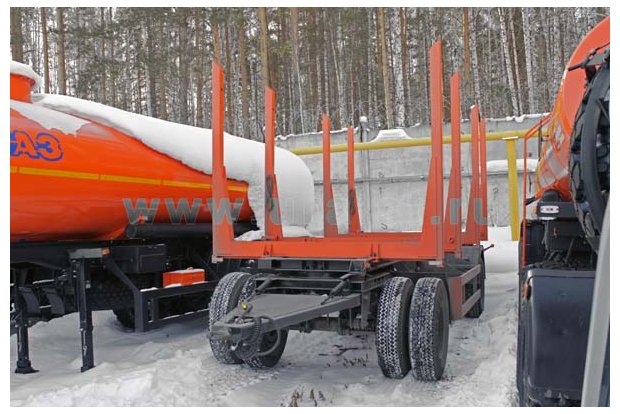 Прицеп сортиментовозный 600840 предназначен для перевозки леса в сортиментах, длиной от 2 до 6 метров по всем видам дорог и местности.