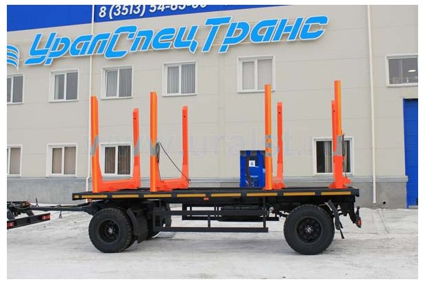 Прицеп сортиментовоз предназначен для перевозки сортимента, две пачки по три метра или одну пачку по шесть метров.